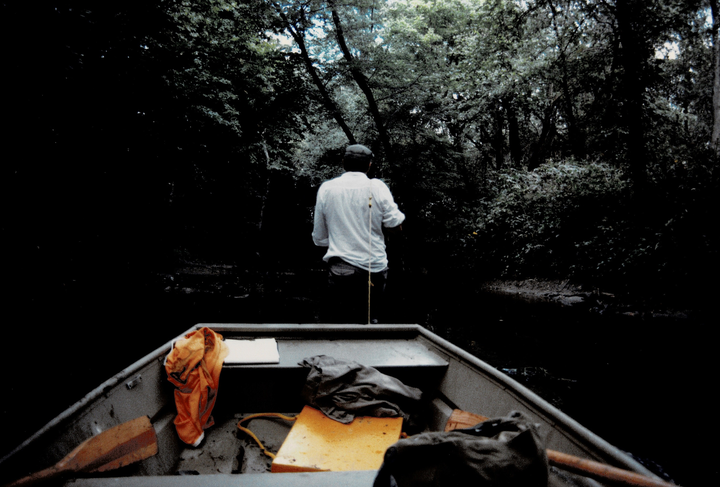 Nancy and I pulling a boat through shallows next to a landfill. I loved working with her.