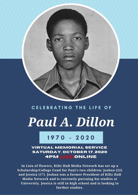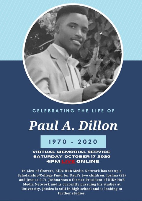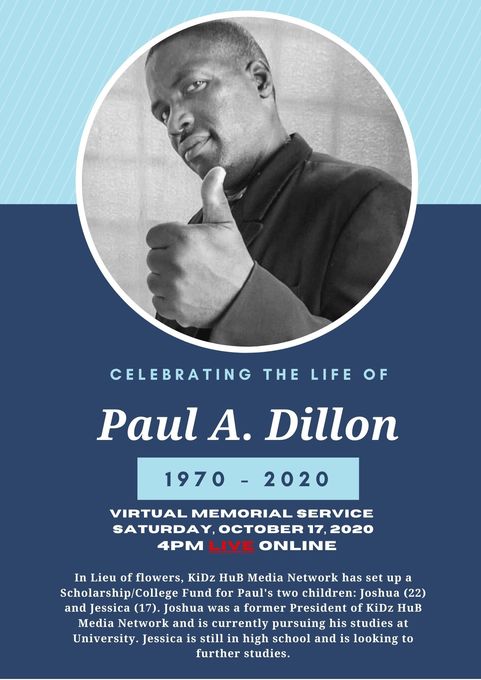 Thank you for joining us LIVE as we celebrate the Life of Paul Anthony Dillon through a Virtual Memorial Service. LIVE Memorial Service Time: - 4:00 pm Jamaica Time - 5:00 pm New York Time - 5:00 pm Canada (GTA) Time - 9:00 pm UK Time In this Virtual Memorial, we reflect and...  see more
