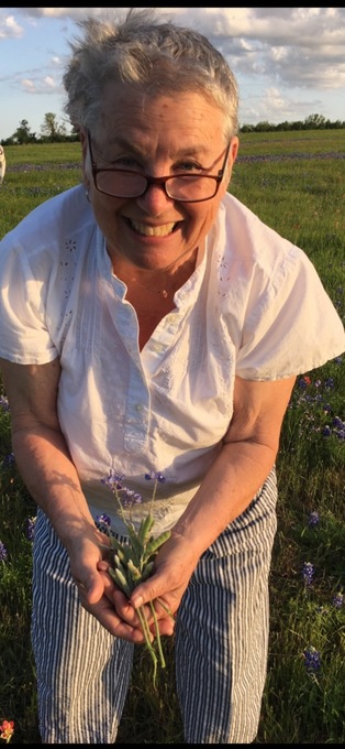 Carol doing what she loved best, gathering flowers and seeds to share and grow.