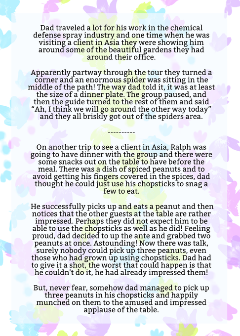 We created this memorial to celebrate the life of Ralph. Collecting your stories and memories here will offer us great comfort. When Ralph went to college, colleges taught practical skills and those skills helped Ralph immensely throughout his life. Working with college students led him to believe that...  see more