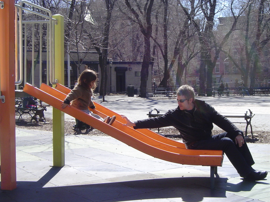 I met Ross in 1995 somewhere in the Midwest, when I was touring as a vendor on the Lollapalooza tour. Neither of us were working at Blue Man yet. He was a beacon of joyful and friendly ease in a sea of of sweltering humans during one of the most... moreI met Ross in 1995 somewhere in the Midwest, when I was touring as a vendor on the Lollapalooza tour. Neither of us were working at Blue Man yet. He was a beacon of joyful and friendly ease in a sea of of sweltering humans during one of the most outrageous heatwaves in the midwest. We made no money selling anything during this heat wave, and my friend and I would bum rides on his golf cart he had privy to, in order to ride over to the $5.00 burritos cart. My friend and i would split one for dinner, I believe he felt bad for us and bought us one so we didn't have to split. Ahhhh....We were all just kids back then. And we didn't stay in touch but then fast forward, Ross appears at Blue Man Group and it was such a great surprise! I can remember, the day he was in the theatre, and said, Hi Ela, and we were like how funny, We are both working here? And then to grow up into adults and have kids at the same time. All the memories with our little babies and parties in Southold....Ross always had a smile, always a hug and always bright with stories. Here's a photo of Ross (far left) and a bunch of us together in Washington Square Park with our new babies. I remember plopping Dash into his lap, and I love that he is holding our kiddo for us , while still holding onto Cocoro, and the look they are giving each other is priceless.