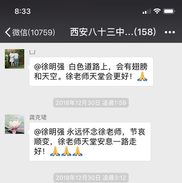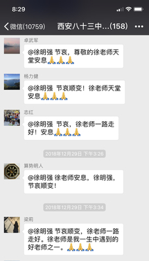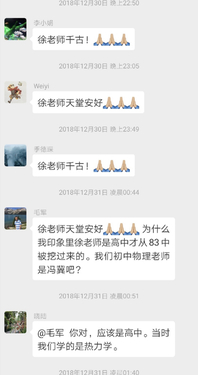 These days, our classmates shared a lot of sympathy thoughts in WeChat. One of them wrote, she still remembered that Xu LaoShi walked her across the street, helped her get the taxi going home. After forty years, what we learned back then in the classroom might have already faded away. But those short and touching moments still remain in our memory, and will keep us remembering him as a great teacher, advisor, and most importantly an influencer. So no matter how respectful a school president he was . . . no matter how strict and how kind he was with us as students . . . and no matter how much he loved his physics classes that he so tirelessly and expertly taught to so many of us . . . Xu LaoShi influenced each and every one of us in many more different ways such that we can never, ever accurately or fully explain with the mere tools of these Earthly written words . . .