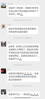 On behalf of several very close high school... more此文原为徐老师追思会所写, 很遗憾最后未能成行, 特将文字贴在此处以哀悼我们敬重的徐老师
